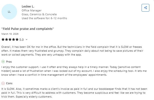 - User-friendly platform with strong support and smooth workflows: Jobber stands out for its ease of use across scheduling and invoicing, with responsive customer support that helps resolve issues quickly, though financing workflows can complicate standard invoicing processes. (Capterra, March 12, 2026)