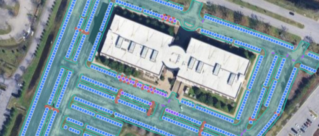 Automatically detect pavement areas, drive lanes, parking lots, curbs, boundaries, and striping.